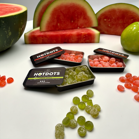 HotDots started as an experiment in restraint. We wanted to see what spicy candy could be if it focused on flavor and balance, instead of bravado. Fruit that tastes like fruit. Heat that feels real, because it is. Each candy dot is made with real chili peppers.