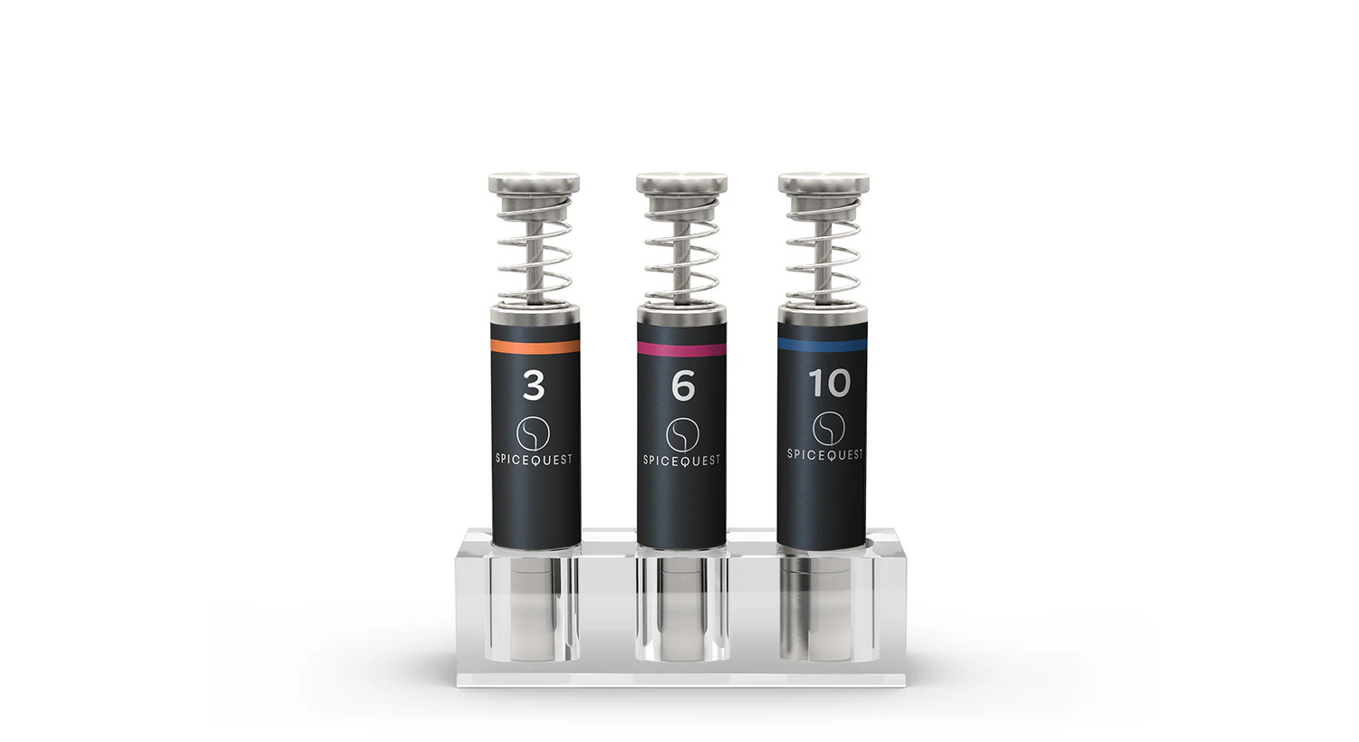 SpiceQuest’s precision grinders feature a calibrated spring action mechanism for perfect spice dosing and an airtight, light-blocking chamber.