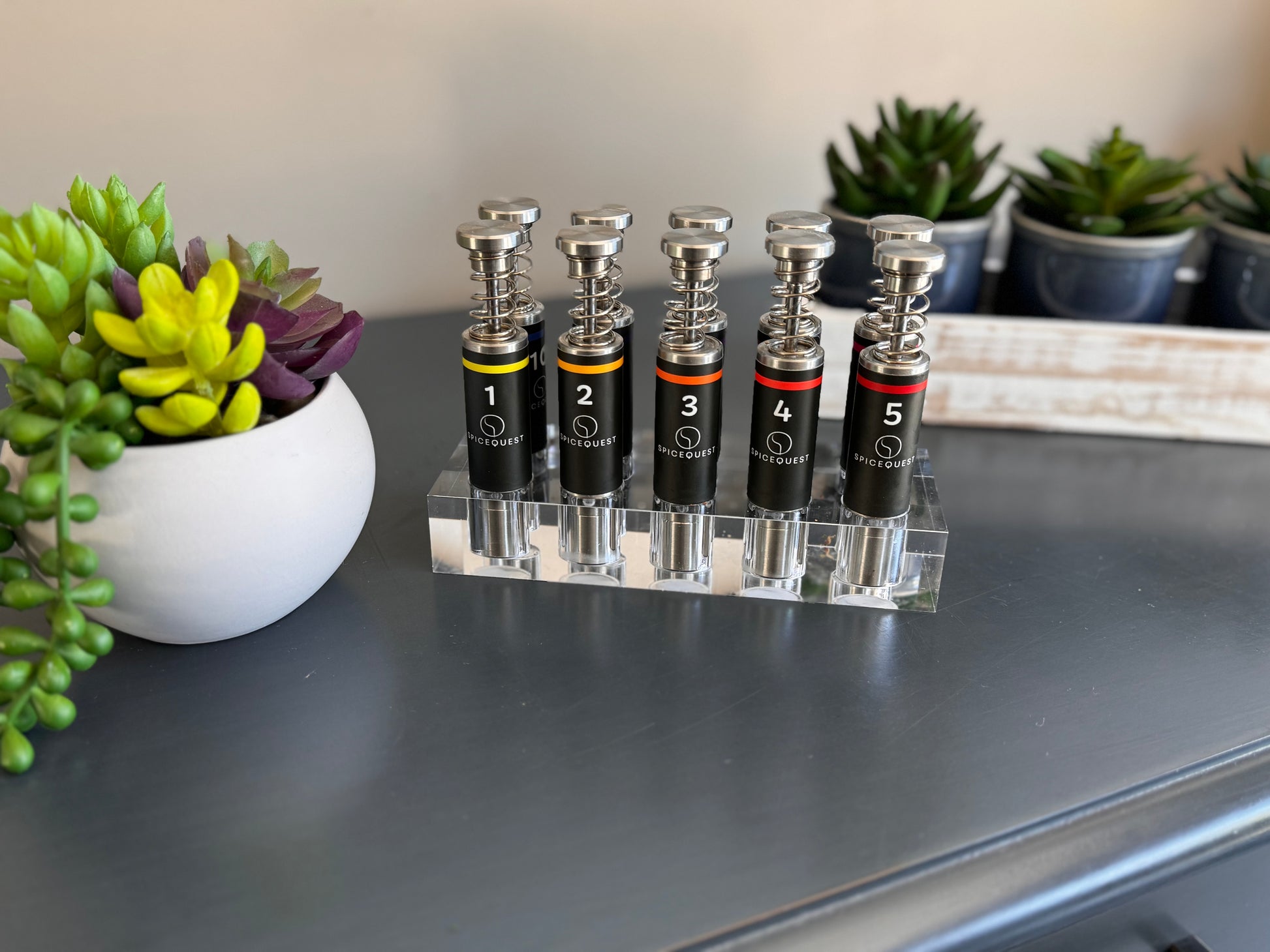 What can I say but wow this is the best product ever the levels of heat are perfect for each level of heat it's not just blow your face off heat there's flavors of each kind of pepper as well, the acrylic base is just another level of care an thought that went into this they could have just given me the spice grinders but they didn't they put the care into giving it a base an that care is next level. When I received my package the care that went into the packaging was just another level of care that went into this product it showed the level of passion and professionalism to make a good product I can go on an on about how much I love this product and will certainly be buying more but do yourself a favor and buy yourself something off SpiceQuest an see for yourself how impressed an happy of a customer you can be