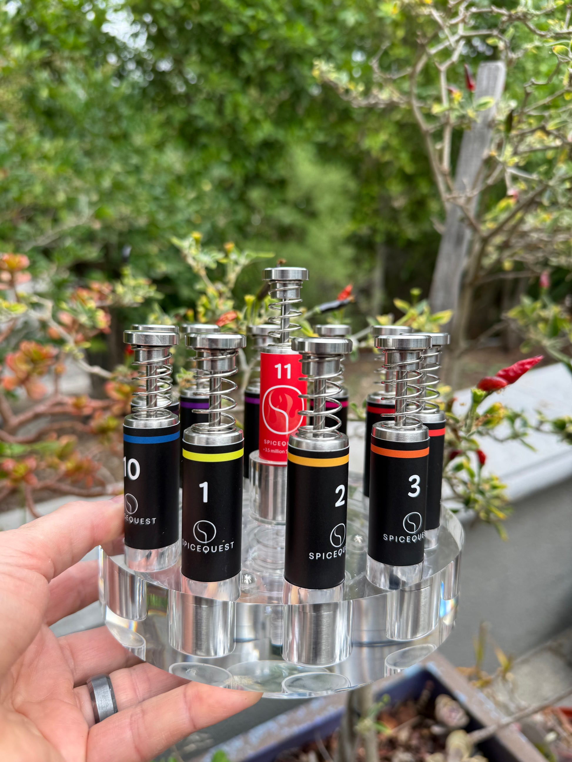 This carousel is a perfect way to show off my Spice Quest kit! It always impresses, and it’s a convenient way to store my grinders. The fact it comes apart for cleaning is epic too