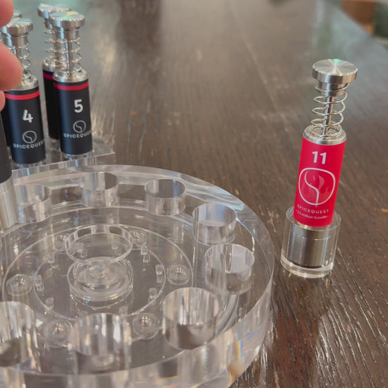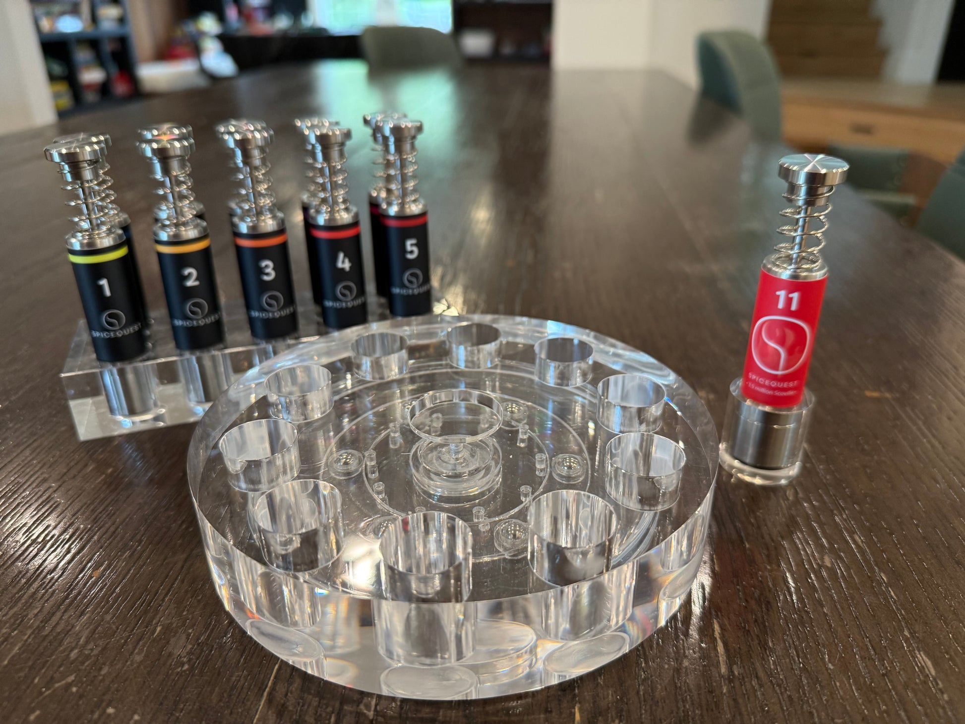 Nearly a year in the making, The Carousel is finally here. This display centerpiece was designed to hold all 10 spices from the SpiceQuest Pro Kit, with an extra slot in the middle for No. 11.